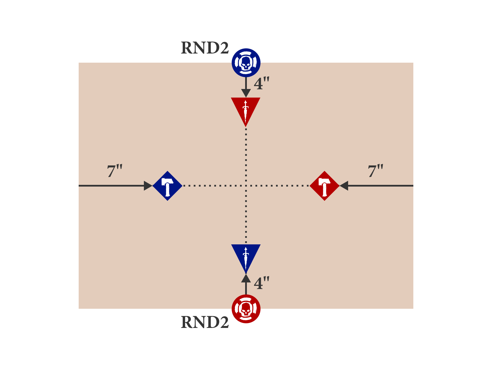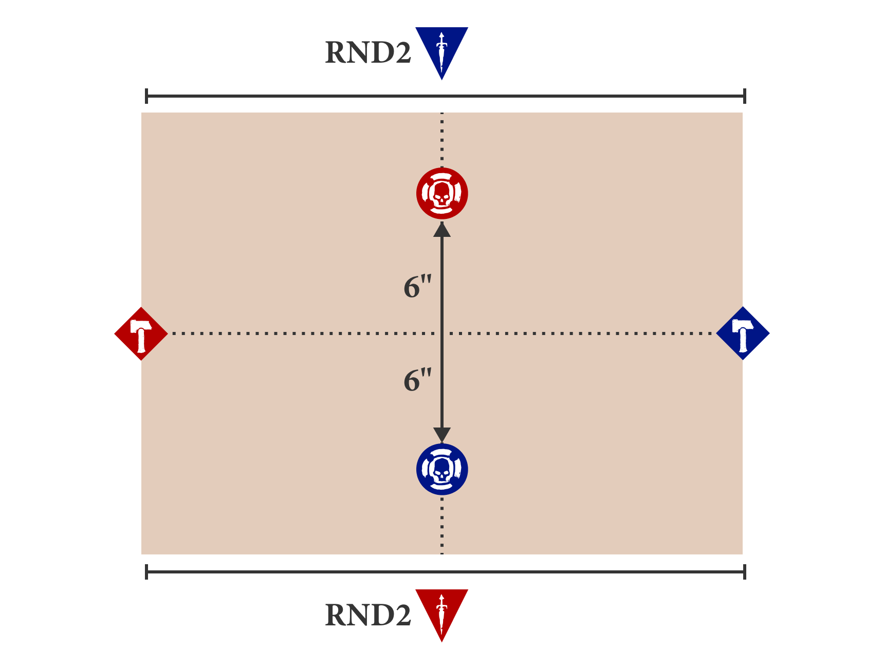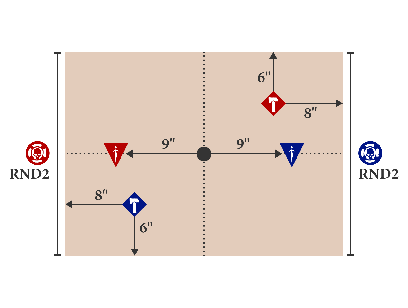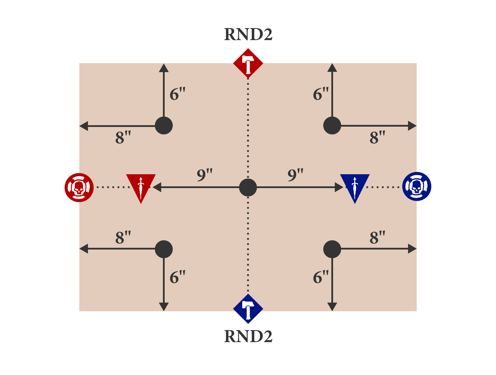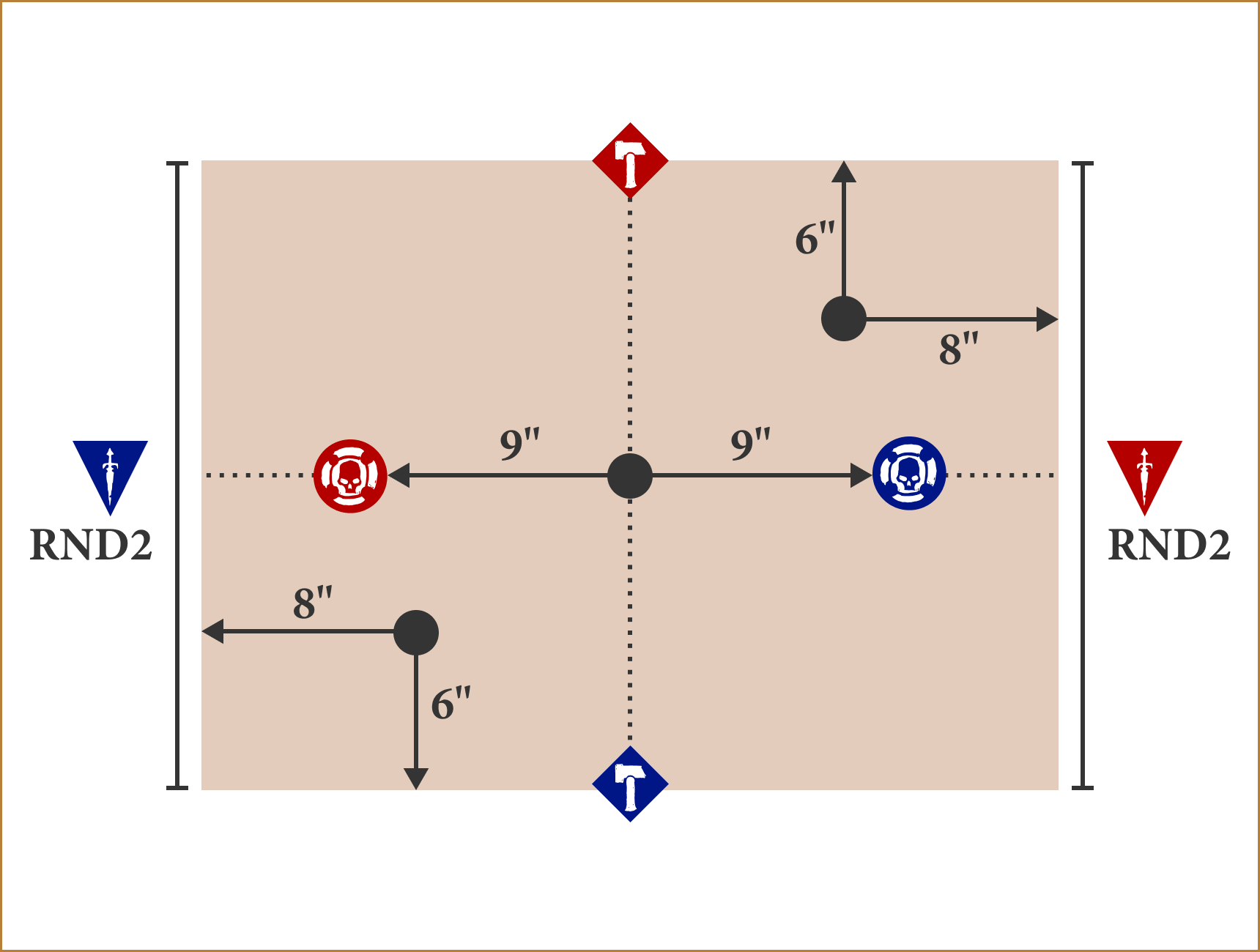 Before the battle, 5 objectives are placed on the battlefield floor as shown on the deployment map.