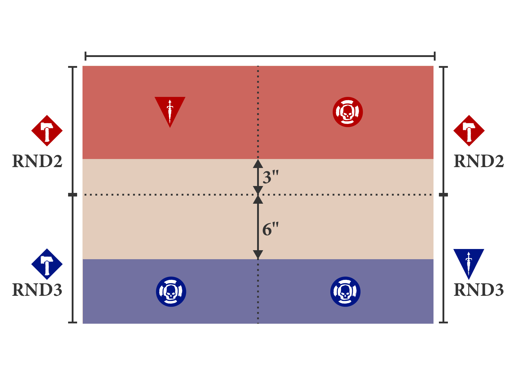 The third round of this campaign arc is 1 final battle fought between all the players. The outcome of this battle will determine which team are declared the victors. This battle is a Coalition of Death team battle and uses the Raze and Ruin battleplan below.