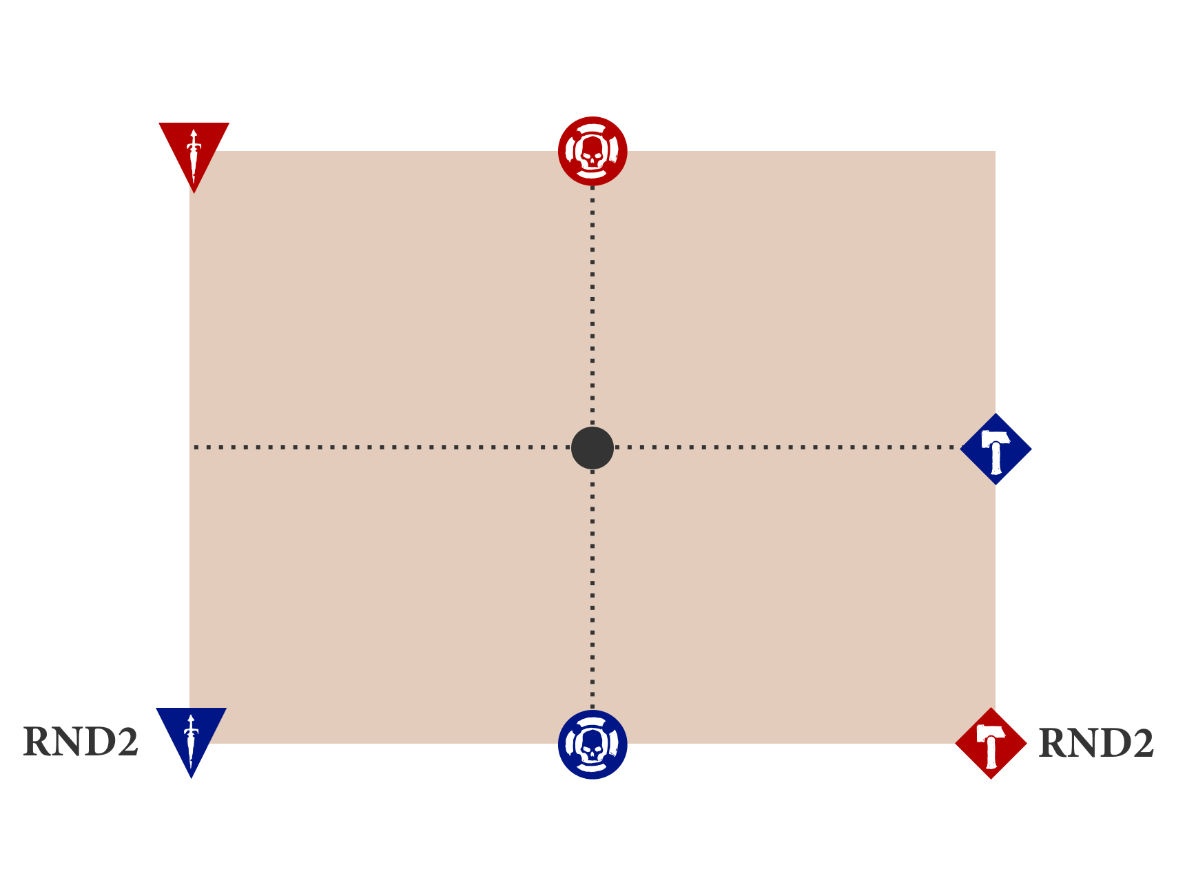 Before the battle, 1 objective is placed at the centre of the battlefield, then the defender places 1 objective, and then the attacker places 1 objective. Each objective must be placed more than 6" from all other objectives and the battlefield edge.