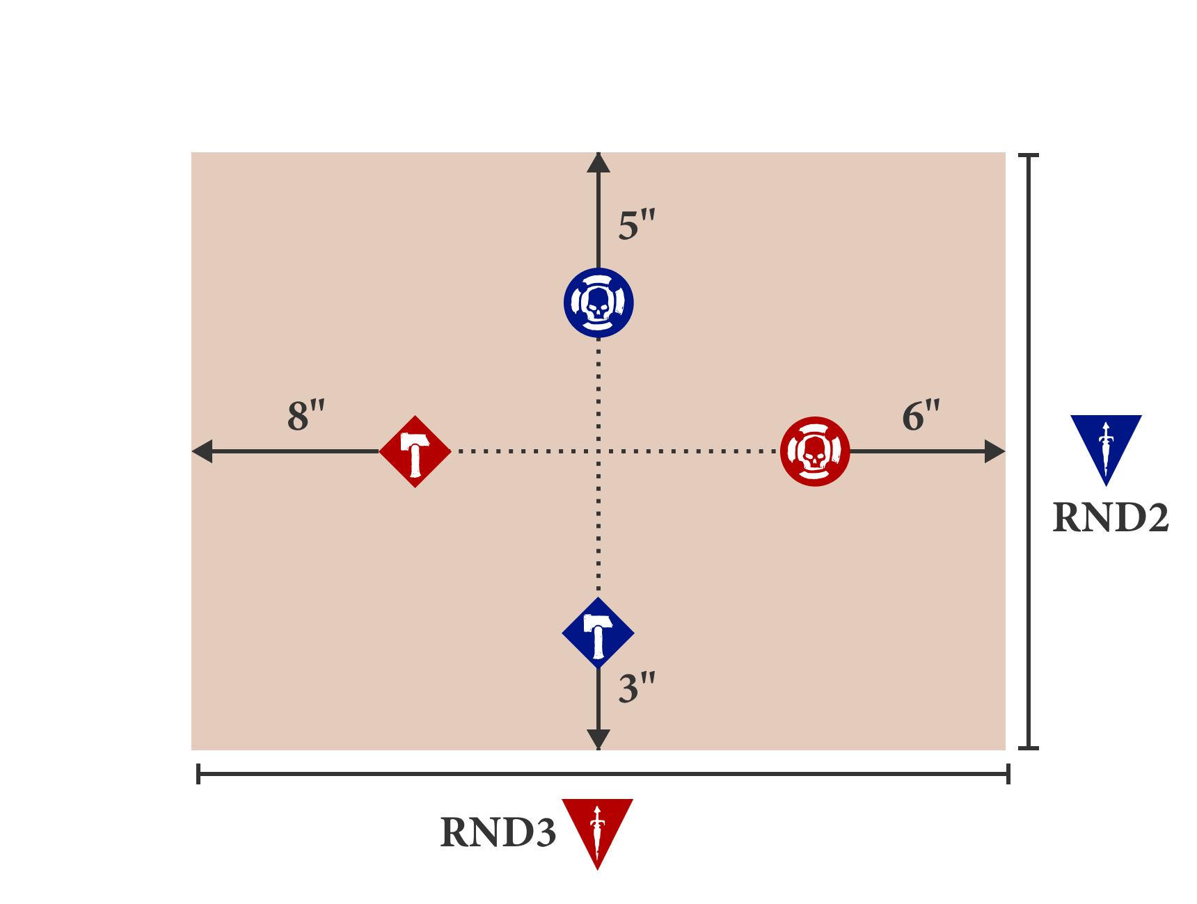 Before the battle, the defender places 5 treasure tokens on the battlefield. Each must be placed on the battlefield floor or a platform, each more than 4" horizontally from the others and more than 6" from the battlefield edge.
