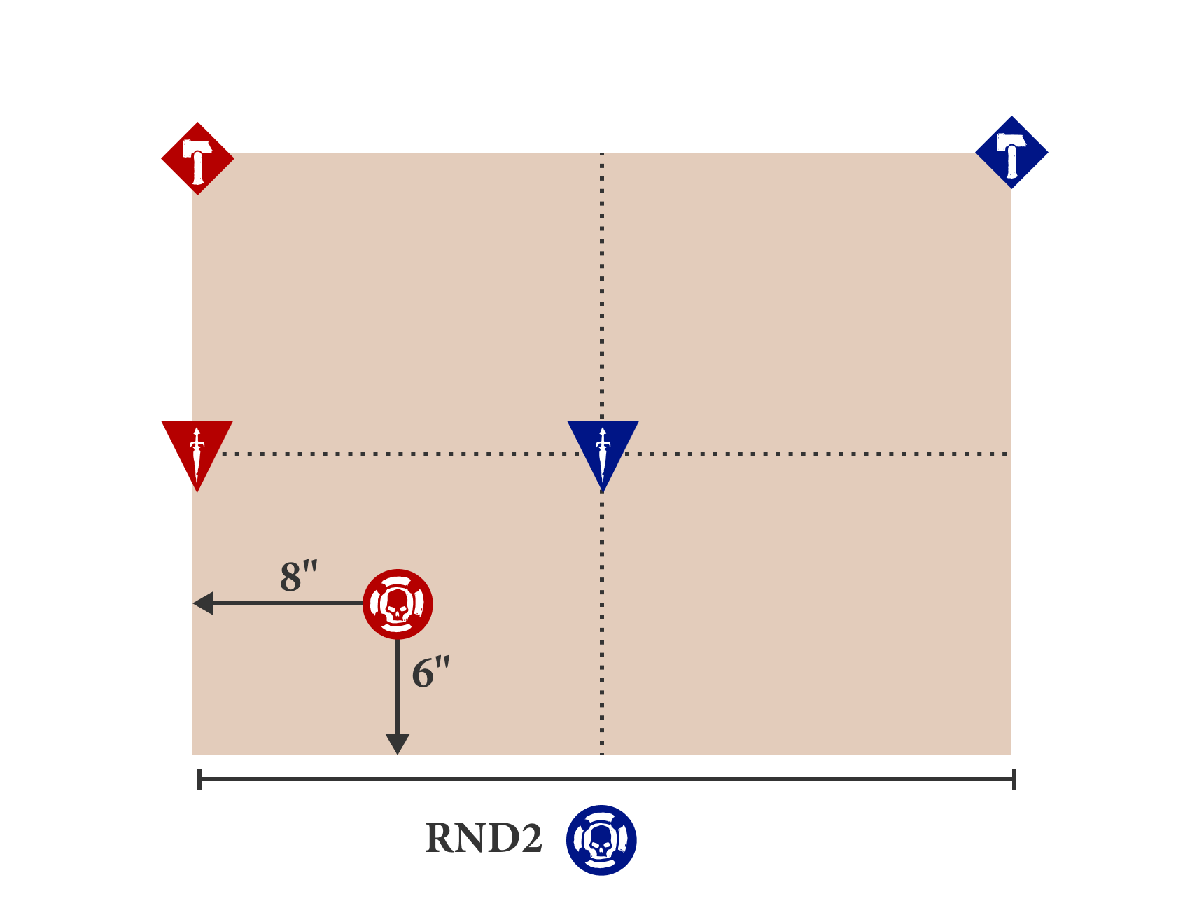 Use the deployment map below. The defender is blue and the attacker is red.