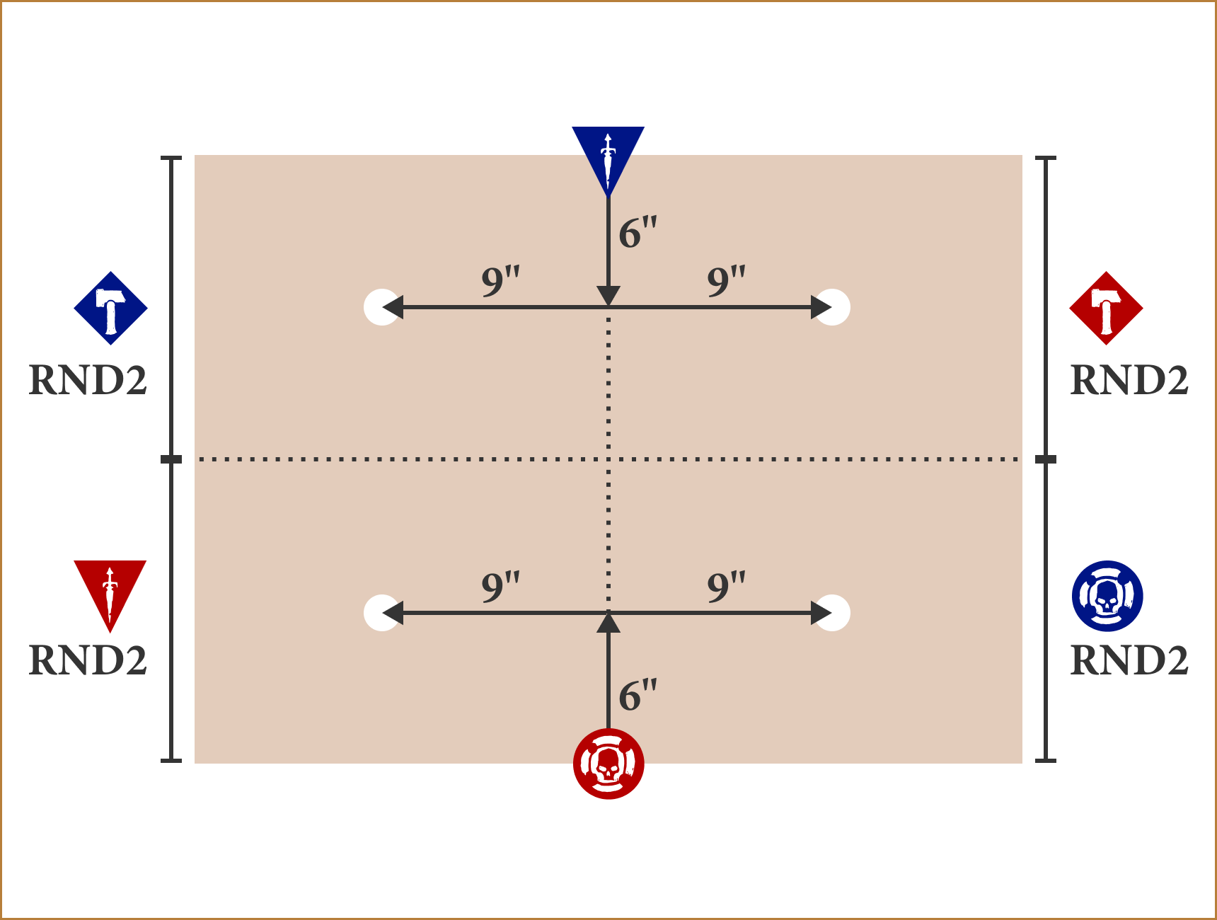 Before the battle, place 4 objectives on the battlefield as shown on the map. For each objective controlled by the attacker at the end of the battle round, the attacker score 1 defilement point. In addition, fighters in the attacker's warband can use the following ability: